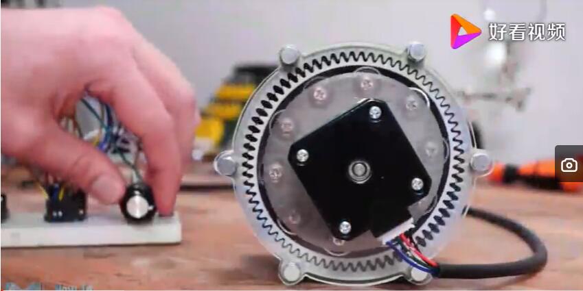 今天有牛人把一個(gè)很小的諧波減速器,直徑只有5公分的諧波減速器拿來(lái)做試驗(yàn)。是日本人制造的諧波減速機(jī),那我們先把它安裝到一塊鐵板上面。