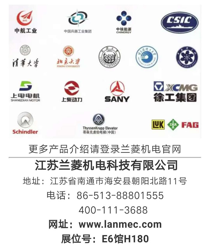 | 2018上海電機展(2018.06.13-06.15)在上海新國際博覽中心舉行,我司展號位為: E6館 H180,歡迎新老客戶蒞臨指導(dǎo)! 蘭菱科技 一 扭矩傳感器、電機測試臺、執(zhí)行器測試臺、減速機測試臺品牌制造企業(yè)。 集團(tuán)總部: 江蘇海安 售后保障: 江蘇、上海、北京、深圳 聯(lián)系人:顧聳智 13962700160