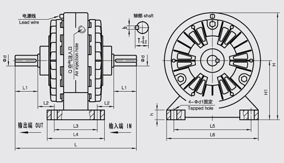 FL-J型( 軸輸入、軸輸出、機(jī)座支撐)磁粉離合器 FL-J型磁粉離合器廣泛應(yīng)用于造紙、印刷、 塑料、橡膠、紡織、印染、電線電纜、冶金、壓片機(jī)以及其他有關(guān)卷取加工行業(yè)中的放卷和收卷張力控制。 FL-J型磁粉離合器是根據(jù)電磁原理以及磁粉傳遞轉(zhuǎn)矩原理應(yīng)運(yùn)而生的機(jī)電產(chǎn)品。FL-J型磁粉離合器具有激磁電流和傳遞轉(zhuǎn)矩基本成線性關(guān)系,并且在同滑差無關(guān)的情況下能夠傳遞一定的轉(zhuǎn)矩。 除此之外FL-J型磁粉離合器具有響應(yīng)速度快、結(jié)構(gòu)簡單、無污染、無噪音、無沖擊振動節(jié)約能源等優(yōu)點(diǎn)。磁粉離合器是一種多用途、性能優(yōu)越的自動控制元件。 特性: