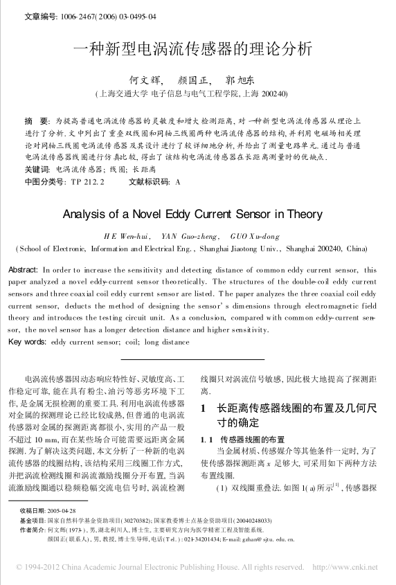Abstract: In order to increase the sensitivity and detecting distance of common eddy current sensor, this