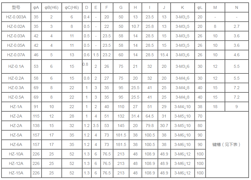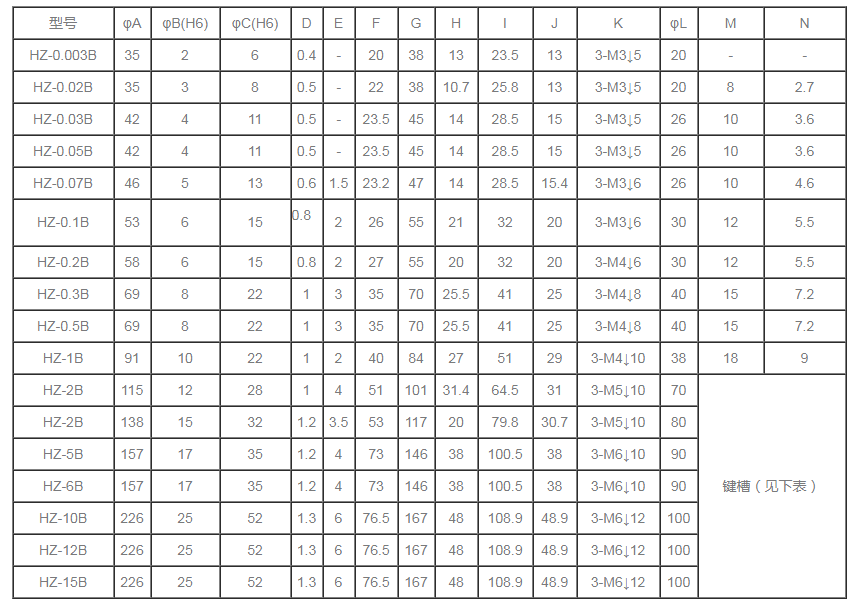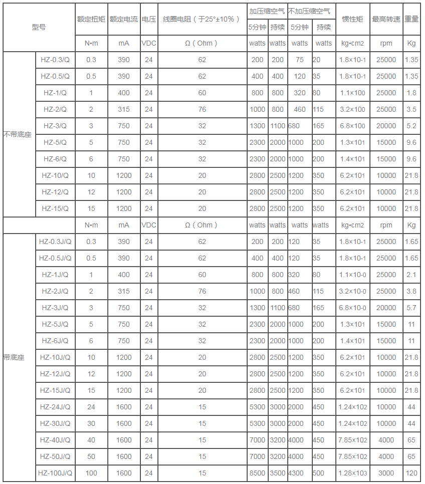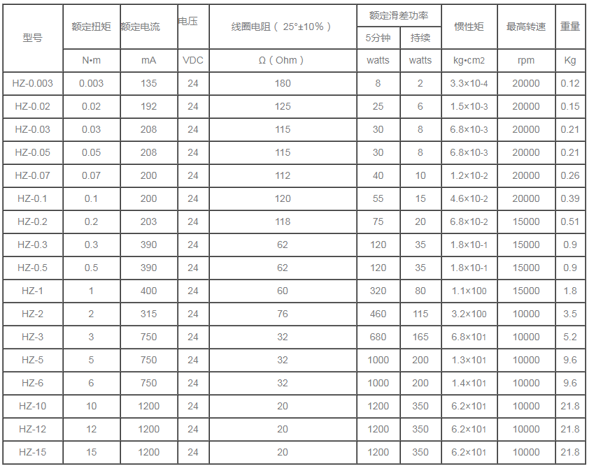 HZ自冷式磁滯制動器規(guī)格參數(shù)