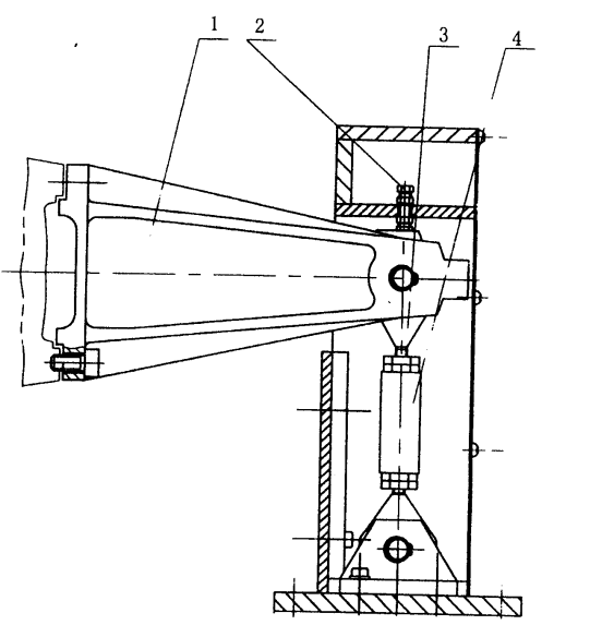 圖四(b)YP1900測(cè)力機(jī)機(jī)構(gòu)示意圖 1、制動(dòng)臂 2、固定螺栓 3、活節(jié)螺栓 4、拉壓力傳感器