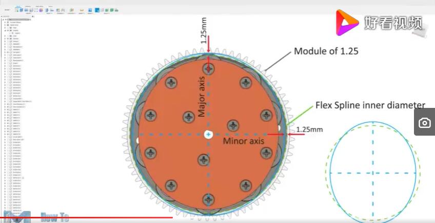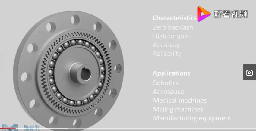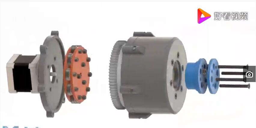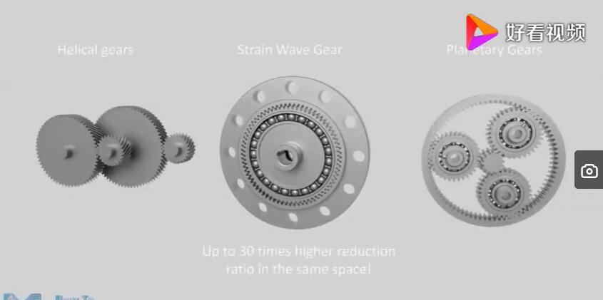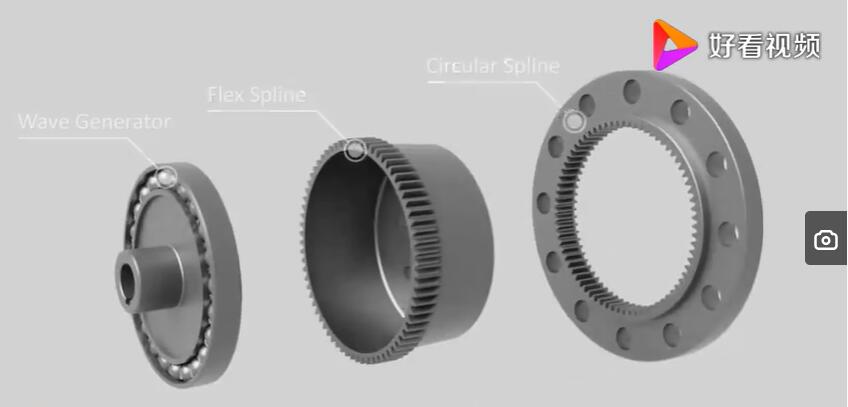 那我們總結(jié)一下諧波減速機(jī)它的缺點(diǎn)就是成本高,耐沖擊能力比較弱。當(dāng)然現(xiàn)在工業(yè)比較發(fā)達(dá)、航空制造、流水線上用到機(jī)器人,用到諧波減速機(jī)的地方比較多。目前國(guó)際的品牌和國(guó)內(nèi)的品牌也不少。那么我們看一看他們是通過(guò)什么原理來(lái)實(shí)施減速的這個(gè)效果的,通過(guò)這個(gè)視頻我們就可以看到,外部的主動(dòng)輪帶動(dòng)中間的柔輪做旋轉(zhuǎn)運(yùn)動(dòng),這個(gè)主動(dòng)輪直接插入中間帶動(dòng)柔輪,我們可以看到這個(gè)柔輪是變形的,主動(dòng)輪帶動(dòng)柔輪一起旋轉(zhuǎn),因?yàn)槿彷喿冃嗡c周圍的鋼圈形成了嚙合。由于這個(gè)中間的主動(dòng)輪的旋轉(zhuǎn),它會(huì)進(jìn)一步達(dá)到一個(gè)減速效果。隨著主動(dòng)輪速度的增加,后面的柔輪轉(zhuǎn)速不是太快。它的減速比可以從70~500?梢赃_(dá)到一個(gè)非常大的減速比。他用的最多的就是用在機(jī)器人的旋轉(zhuǎn),機(jī)器人的胳膊關(guān)節(jié)上。還可以插取一些比較脆弱的東西,比如說(shuō)玻璃屏幕替代,它的本身精度非常高,配合伺服電機(jī)使用。伺服電機(jī)的成本也非常高。一般是用在機(jī)器人的關(guān)節(jié)上,我們這次太空倉(cāng)里面的機(jī)械臂就用上了我們國(guó)產(chǎn)的諧波減速機(jī),非常精度的把航天員湯宏波、劉伯明送上外太空進(jìn)行倉(cāng)外作業(yè),由在倉(cāng)內(nèi)的航天員來(lái)操作機(jī)械臂,要求精度非常高,還要適度外太空惡劣的無(wú)空氣環(huán)境,大量的宇宙的射線,對(duì)我們國(guó)防工業(yè)也是一個(gè)挑戰(zhàn)。