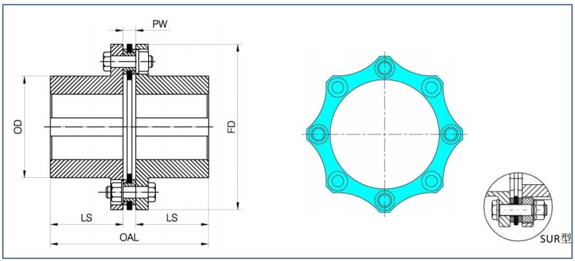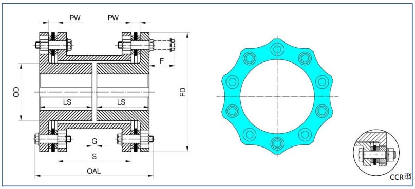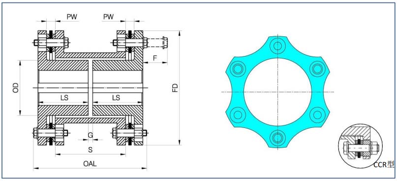G系列膜片聯(lián)軸器有6孔、8孔及10孔設(shè)計,滿足不同扭矩及補償?shù)囊,并有多種結(jié)構(gòu)型式,可根據(jù)要求進(jìn)行動平衡,也可根據(jù)要求滿足API610或API671標(biāo)準(zhǔn)。