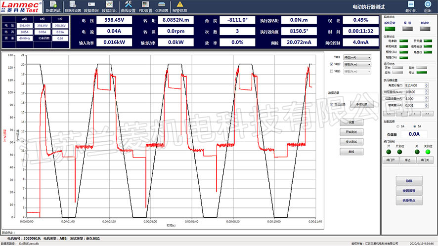 執(zhí)行器測試臺根據(jù)動(dòng)力源的類型可以分為:電動(dòng)執(zhí)行器測試臺、氣動(dòng)執(zhí)行器測試臺、液動(dòng)執(zhí)行器測試臺、撥叉式氣動(dòng)執(zhí)行器測試臺。 執(zhí)行器測試臺根據(jù)運(yùn)動(dòng)方式的類型可以分為:角行程、多回轉(zhuǎn)、直行程執(zhí)行器測試臺。本測測試系統(tǒng)由加載裝置、轉(zhuǎn)矩轉(zhuǎn)速傳感器、測試臺架、執(zhí)行器安裝夾具、檢測柜等組成,它可以任意改變被測執(zhí)行器的負(fù)載,直接測量出執(zhí)行器負(fù)載耐久狀態(tài)下的輸出轉(zhuǎn)矩、轉(zhuǎn)速、功率、角度、壓力等參數(shù)。電動(dòng)執(zhí)行器測試臺是用于全面檢驗(yàn)和驗(yàn)證電動(dòng)執(zhí)行器(也稱為電動(dòng)閥門執(zhí)行器)各項(xiàng)性能的專用設(shè)備。電動(dòng)執(zhí)行器是閥門、風(fēng)門等設(shè)備的驅(qū)動(dòng)裝置,其可靠性直接關(guān)系到整個(gè)工業(yè)流程的安全與穩(wěn)定,因此其測試至關(guān)重要。