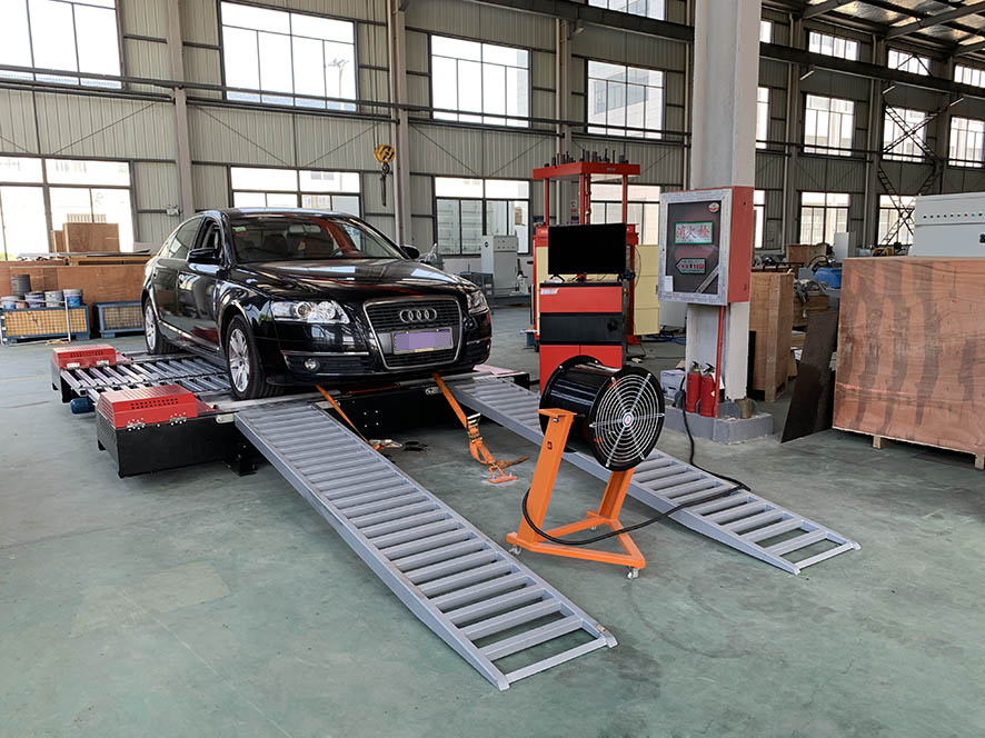 底盤測(cè)功機(jī)主要用來測(cè)試汽柴油汽車、電動(dòng)汽車、汽柴油摩托車、電動(dòng)摩拖車等機(jī)動(dòng)車動(dòng)力性、多工況排放指標(biāo)、燃油指標(biāo)等性能的室內(nèi)臺(tái)架試驗(yàn)設(shè)備。通過滾筒模擬路面,并用加載裝置進(jìn)行模擬加載,實(shí)現(xiàn)對(duì)機(jī)動(dòng)車行駛中各工況的準(zhǔn)確模擬,以及在加速、滑行時(shí),所受阻力、轉(zhuǎn)動(dòng)慣量的模擬。