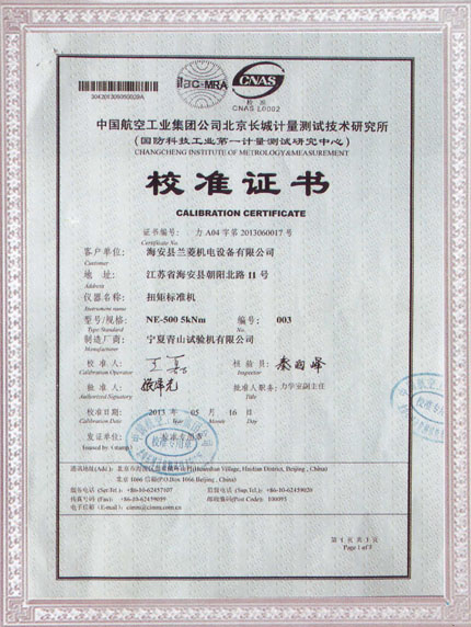 | NE-500標(biāo)準(zhǔn)扭矩機(jī)第三方校準(zhǔn)證書(shū) |